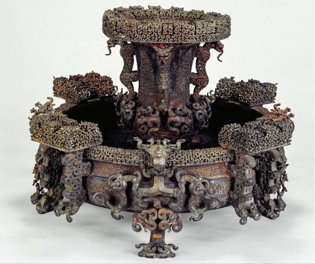 饰有精细繁缛镂空纹饰的曾侯乙尊盘,可谓中国古代最罕见、最特别的青铜礼器之一。出版方供图