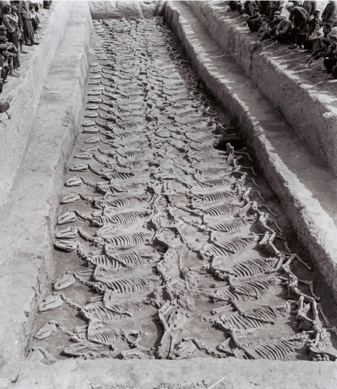山东临淄齐故城五号墓的殉马坑(图为南面段),大约埋葬着600匹马,年代为公元前6世纪至前5世纪。出版方供图