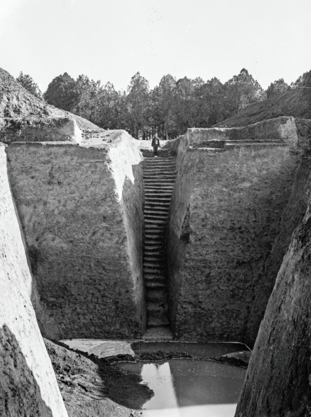 安阳晚商王陵区M1400的墓穴,其陡峭的黄土墓壁深度超过三层楼,年代约为公元前1200年。出版方供图
