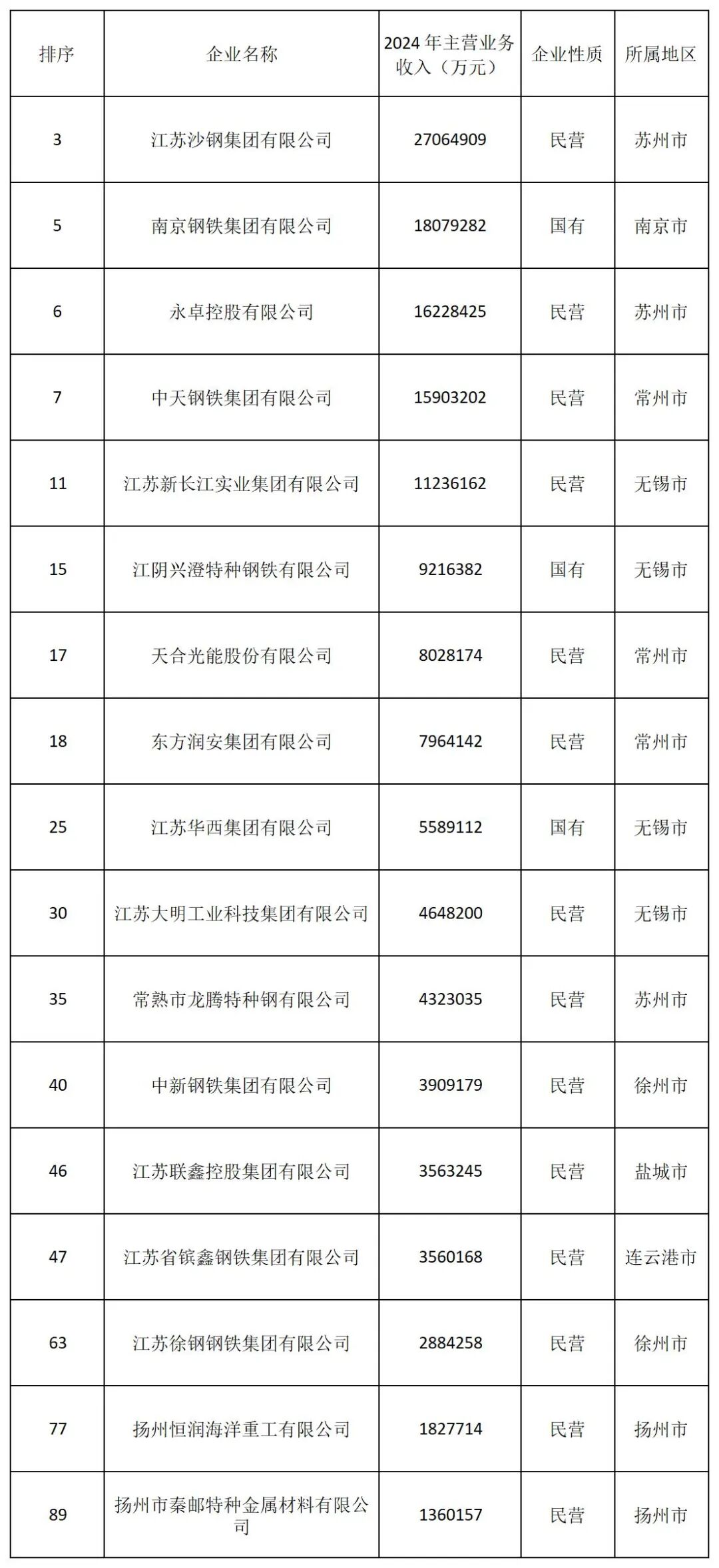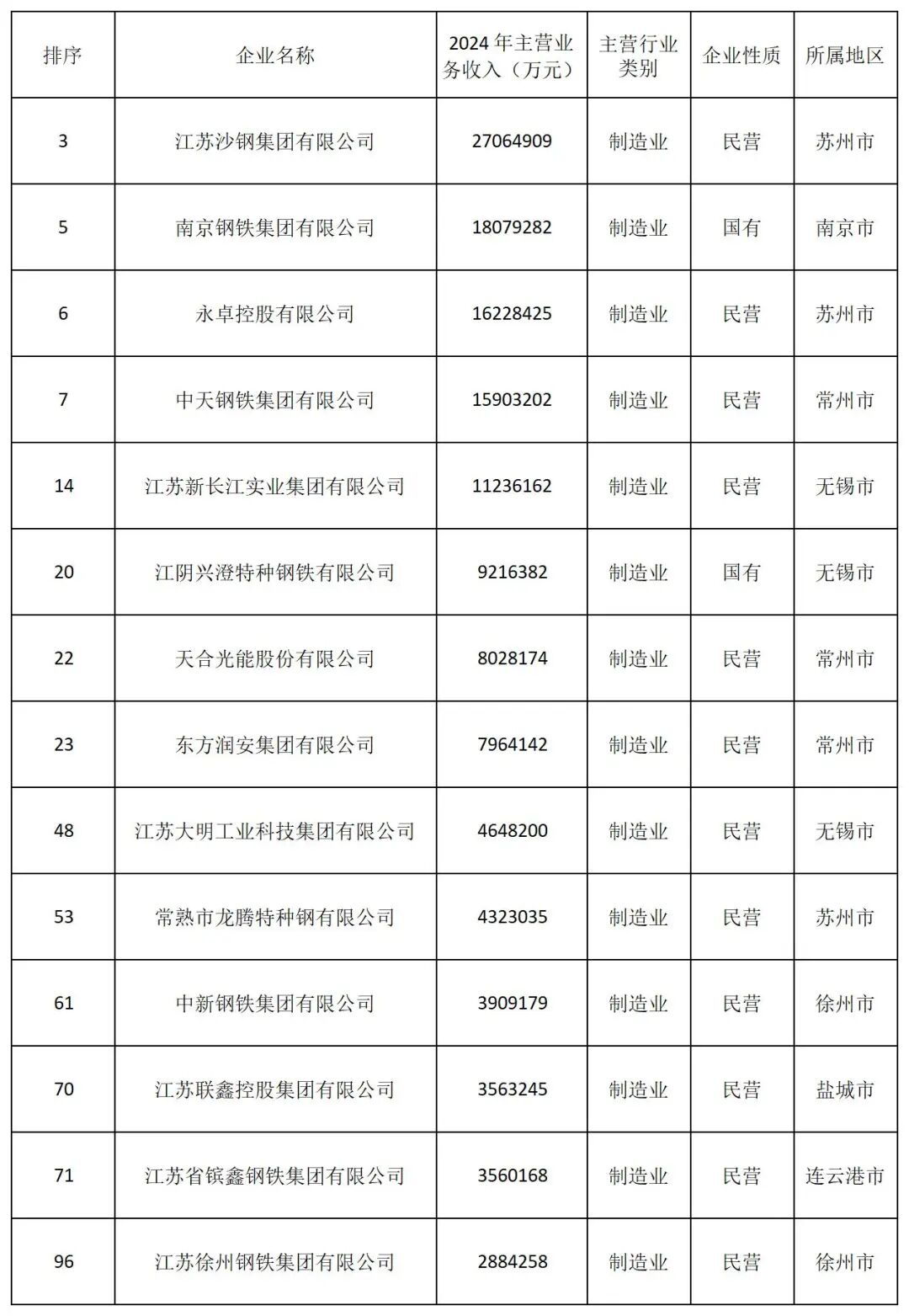 “2025江苏制造业百强企业”完整榜单如下: