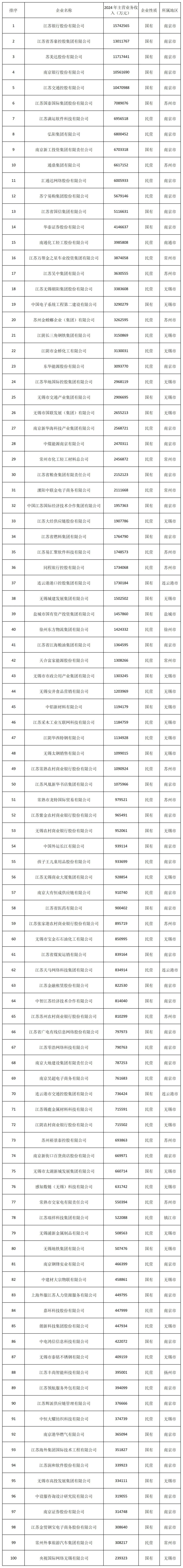 “2025江苏百强企业”完整榜单如下:、